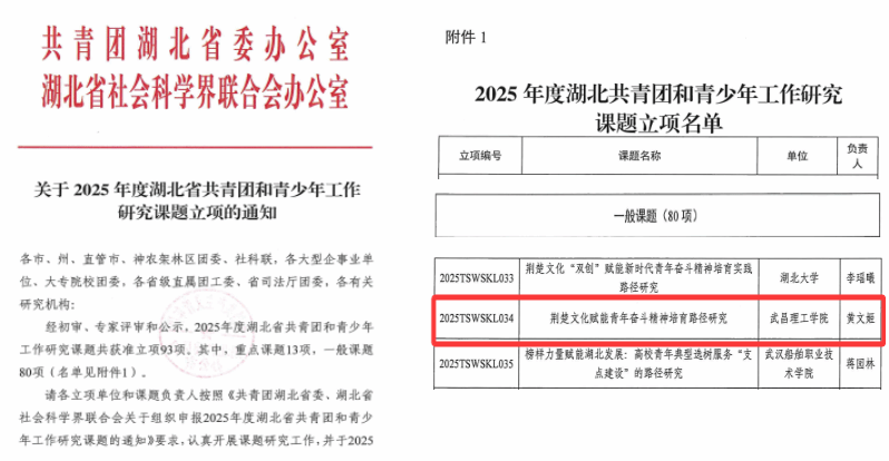 OK138太阳集团获2025年度湖北省共青团和青少年工作研究课题立项