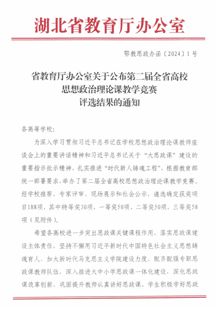关于公布第二届全省高校思想政治理论课教学竞赛评选结果的通知.pdf