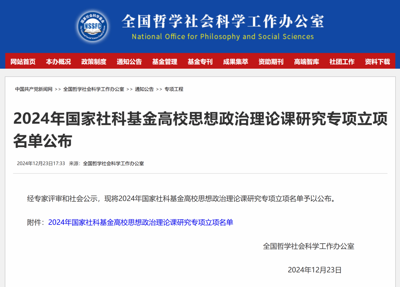 国家社科基金项目作为我国唯一的国家级人文社科类研究项目,代表了人文社会科学领域的国家水准,是衡量高校科研生产力的重要指标,也是高校科研实力和核心竞争力的重要体现。2024年度国家社会科学基金高校思政课专项申报竞争非常激烈,项目经过省级初评、全国盲评、会议终评等层层筛选,最后仅立项186项。