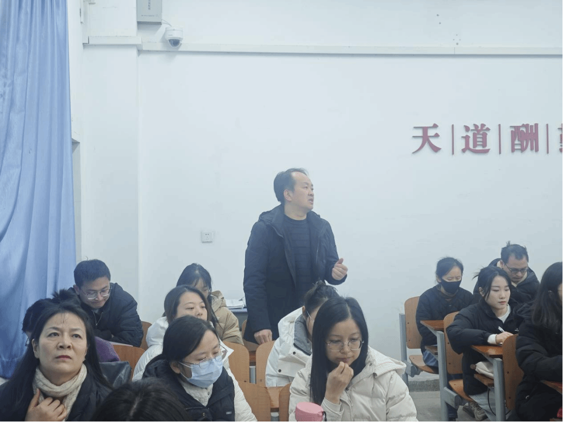 彭贤则校长助理在交流中与老师们深入探讨了思政课教学的优化路径,并就“如何讲好一堂课”提出明确要求与指导意见。他强调,一是要扎实做好备课工作,全面落实备教材、备教法、备学生的“三备”要求,精准把握教学内容的核心要义与学生的认知特点;二是要深入贯彻学生中心教学理念,注重发挥学生的主体作用,增强课堂互动性与感染力;三是要熟练运用赵作斌校长提出的“开发·内化·创新”教学模式,提升教学质量。同时,他还分享了自己运用“微课堂”教学模式、调动学生积极性的实践经验,为在场教师提供了宝贵的教学参考。