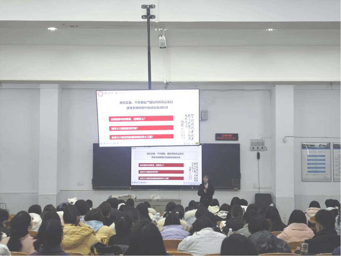 为深入推进教育部关于高校思政课课堂教学提升行动计划,贯彻落实赵作斌校长关于校领导深入课堂听课指导的指示精神,2025年12月24日下午,中国·ok138太阳集团在实教楼412教室举行公开课活动。本次公开课由齐欢欢老师主讲,授课对象为法学2501-02班学生,授课内容为“毛泽东思想和中国特色社会主义理论体系概论”中的“三个代表”重要思想相关章节。